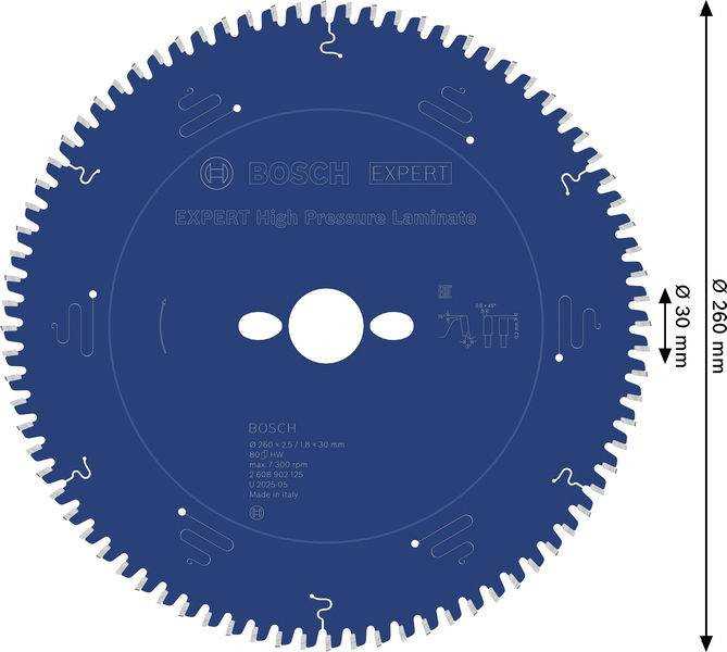 EXPERT nagynyomású laminált körfűrészlap, 260x30 mm, Z80