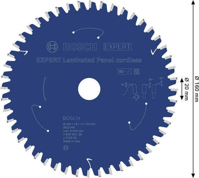 EXPERT laminált panel körfűrészlap, 160x1,8x20 mm, Z48