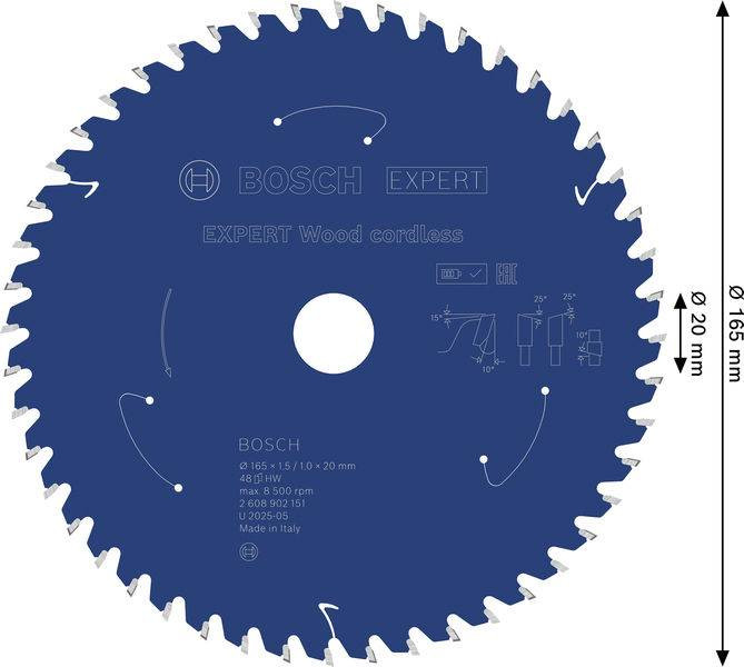 EXPERT fa körfűrészlap, 165x1, 45x20 mm, Z48