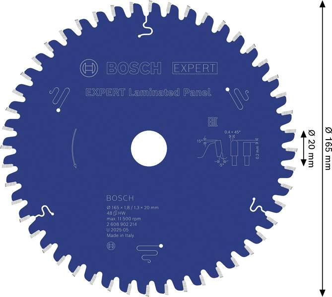 EXPERT laminált panel körfűrészlap, 165x1,8x20 mm, Z48