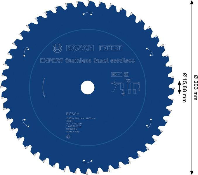 EXPERT rozsdamentes acél körfűrészlap, 203x15,88 mm, Z48