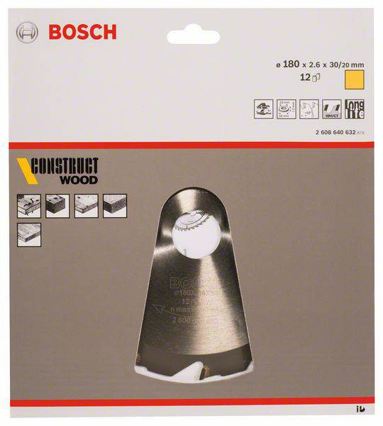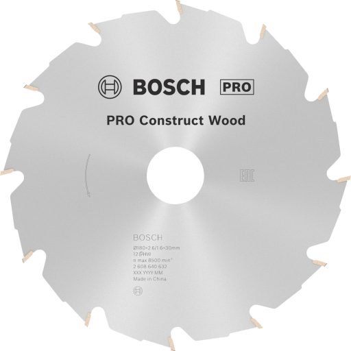 Bosch Accessories Construct Wood 2608640632 Keményfém körfűrészlap 180 x 30 x 2.6 mm Fogak száma (collonként): 12 1 db