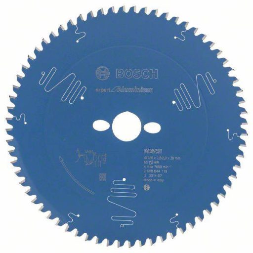 Az Expert for Aluminium körfűrészlap tökéletes vágást végez alumíniumban. A Bosch által házon belül gyártott egyedi extra kemény Microteq fogak nagyon finom keményfém szemcsékből készülnek, így maximalizálják a penge élettartamát és teljesítményét. Ezt a teljesítményt segíti a penge védőbevonata, amely megakadályozza a korróziót és megbízható vágást biztosít, miközben csökkenti a súrlódást. A termék csillapító résekkel van felszerelve a különösen sima futás, lényegesen kisebb zaj és észrevehetően kisebb vibráció érdekében. Használja ezt a fűrészlapot alumíniumhoz, színesfémekhez, műanyagokhoz, epoxikhoz és fához. Az Expert for alumínium körfűrészlap HLTCG (High-Low Triple Chip Ground) fogakkal rendelkezik, így a penge kellően szívós az alumínium vágásához. Külső átmérő mm: 250, furat mm: 30, vágási szélesség (b1) mm: 2,8, penge vastagság (b2) mm: 2,0, vágási szélesség (b1) mm / penge vastagsága (b2) mm: 2,8/2,0, Fogak száma : 68, Fogforma: HLTCG, Max. forgási sebesség (rpm): 7600, Vágási eredmény: 4, NL/Átmérő TKS: 2/7/42 2/9,5/46,5 2/9/46 2/10/60, dőlésszög ° w1: -5, hasítási szög ° w2: 15