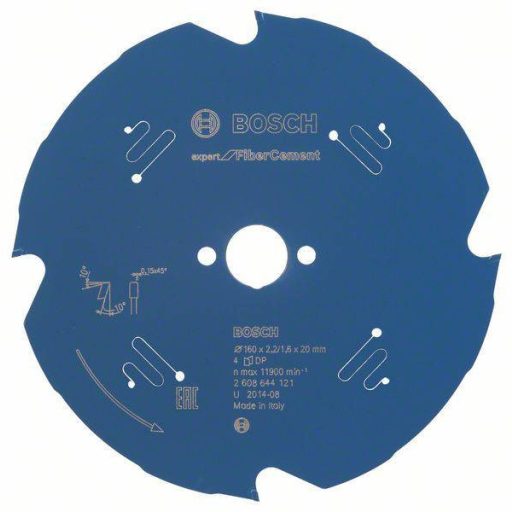 Műszaki adatok: Anyag alkalmasság: Cementrost · Fog forma: Trapéz fogazás · Fogak száma (collonként): 4 · Fordulatszám (max.): 11900 fordulat/perc · Furat átmérő: 20 mm · További műszaki adatok: Vágási szélesség: 2.2 mm · Vastagság: 1.6 mm · Átmérő: 160 mm