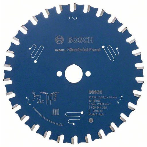 Az Expert for Sandwich Panel körfűrészlap egyenletes teljesítményt tesz lehetővé szendvicspaneleken. A speciális fogforma lehetővé teszi az acéllemez átvágását, miközben fenntartja az acélréteg és a szigetelőanyag közötti kapcsolatot. A penge rendkívül kemény Microteq fogakkal rendelkezik, amelyek belsőleg kemény keményfém szemcsékből vannak megmunkálva. Ezt a teljesítményt segíti a penge védőbevonata, a Proteqtion, amely megakadályozza a korróziót és megbízható vágást tesz lehetővé, miközben csökkenti a súrlódást. A termék csillapító résekkel van felszerelve a különösen sima futás, lényegesen kisebb zaj és észrevehetően kisebb vibráció érdekében. Használja ezt a fűrészlapot (egy vagy két oldalról bevont) acéllemezes szendvicspaneleken. Kompatibilis a merülő- és kézi körfűrészekkel. Az Expert for Sandwich Panel körfűrészlap MTCG (Multi-Purpose Triple Chip Grind) fogkonfigurációja hosszú élettartamot biztosít a legkeményebb alkalmazások után is. Külső átmérő mm: 160, furat mm: 20, vágási szélesség (b1) mm: 2,0, penge vastagság (b2) mm: 1,6, vágási szélesség (b1) mm / penge vastagsága (b2) mm: 2,0/1,6, Fogak száma : 30, fogforma: MTCG, max. forgási sebesség (rpm): 11900, vágási eredmény: 3, NL/átmérő TKS: 2/6/32,5, dőlésszög ° w1: 0, hézagszög ° w2: 12