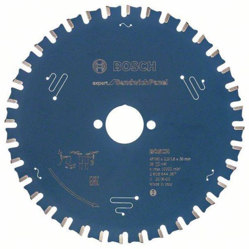 Az Expert for Sandwich Panel körfűrészlap egyenletes teljesítményt tesz lehetővé szendvicspaneleken. A speciális fogforma lehetővé teszi az acéllemez átvágását, miközben fenntartja az acélréteg és a szigetelőanyag közötti kapcsolatot. A penge rendkívül kemény Microteq fogakkal rendelkezik, amelyek belsőleg kemény keményfém szemcsékből vannak megmunkálva. Ezt a teljesítményt segíti a penge védőbevonata, a Proteqtion, amely megakadályozza a korróziót és megbízható vágást tesz lehetővé, miközben csökkenti a súrlódást. A termék csillapító résekkel van felszerelve a különösen sima futás, lényegesen kisebb zaj és észrevehetően kisebb vibráció érdekében. Használja ezt a fűrészlapot (egy vagy két oldalról bevont) acéllemezes szendvicspaneleken. Kompatibilis a merülő- és kézi körfűrészekkel. Az Expert for Sandwich Panel körfűrészlap MTCG (Multi-Purpose Triple Chip Grind) fogkonfigurációja hosszú élettartamot biztosít a legkeményebb alkalmazások után is. Külső átmérő mm: 190, furat mm: 30, vágási szélesség (b1) mm: 2,0, penge vastagság (b2) mm: 1,6, vágási szélesség (b1) mm / penge vastagsága (b2) mm: 2,0/1,6, Fogak száma : 36, fogforma: MTCG, max. forgási sebesség (rpm): 10000, vágási eredmény: 3, NL/átmérő TKS: 2/7/42, dőlésszög ° w1: 0, hézagszög ° w2: 12