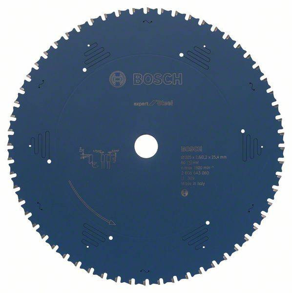 Az Expert for Steel körfűrészlap óriási ütésállósággal rendelkezik az acélon. Az egyedülálló, extra kemény Microteq fogakat házon belül állítják elő a Boschnál, rendkívül robusztus keményfém szemcsékből a nagy teljesítmény érdekében. Ezt a teljesítményt segíti a penge védőbevonata, amely megakadályozza a korróziót és megbízható vágást biztosít, miközben csökkenti a súrlódást. A termék csillapító résekkel van felszerelve a különösen sima futás, lényegesen kisebb zaj és észrevehetően kisebb vibráció érdekében. Az Expert for Steel körfűrészlap MTCG (Multi-Purpose Triple Chip Grind) fogkonfigurációval rendelkezik, amely hosszú élettartamot biztosít. Külső átmérő hüvelyk: 12, külső átmérő mm: 305, furat mm: 25,4, vágási szélesség (b1) mm: 2,6, penge vastagság (b2) mm: 2,2, vágási szélesség (b1) mm / penge vastagsága (b2) mm: 2 .6/2.2, fogak száma: 60, fogforma: MTCG, max. forgási sebesség (rpm): 1800, vágási eredmény: 4, dőlésszög ° w1: 0, hézagszög ° w2: 12