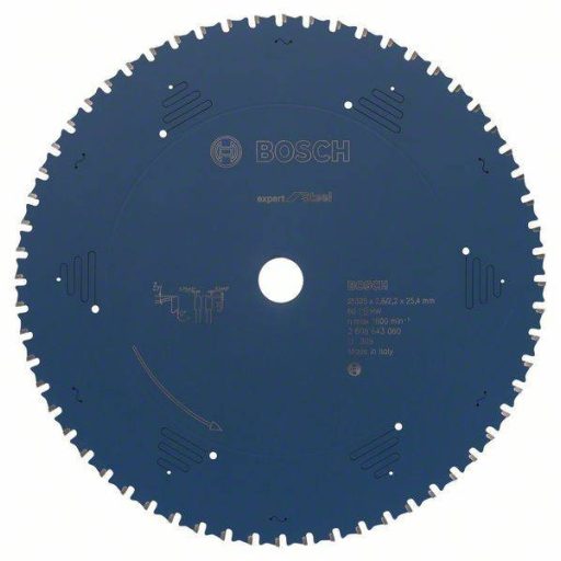 Műszaki adatok: Anyag alkalmasság: Acél · Fog forma: Trapéz lapos fogazás · Fogak száma (collonként): 60 · Fordulatszám (max.): 1800 fordulat/perc · Furat átmérő: 25.4 mm · További műszaki adatok: Vágási szélesség: 2.6 mm · Vastagság: 2.2 mm · Átmérő: 305 mm