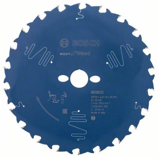 Műszaki adatok: Anyag alkalmasság: Fa · Fog forma: Váltó fogazás · Fogak száma (collonként): 22 · Fordulatszám (max.): 7500 fordulat/perc · Furat átmérő: 30 mm · További műszaki adatok: Vágási szélesség: 2.6 mm · Vastagság: 1.8 mm · Átmérő: 254 mm