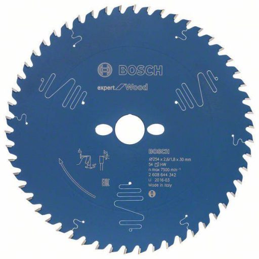 Műszaki adatok: Anyag alkalmasság: Fa · Fog forma: Váltó fogazás · Fogak száma (collonként): 54 · Fordulatszám (max.): 7500 fordulat/perc · Furat átmérő: 30 mm · További műszaki adatok: Vágási szélesség: 2.6 mm · Vastagság: 1.8 mm · Átmérő: 254 mm
