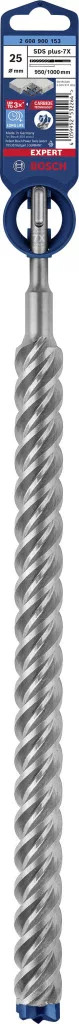 Műszaki adatok: Anyag alkalmasság: Beton, Kő, Gránit, Gneisz · Anyagjellemző: Keményfém betét · Furatátmérő: 25.00 mm · Kivitel (Bosch): Bosch Professional (blauw) · Munkahossz: 950 mm · Szerszám tartó: SDS-Plus · Teljes hossz: 1000 mm