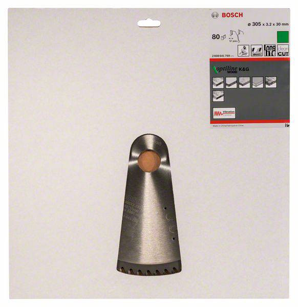 Bosch Accessories Optiline Wood 2608641769 Keményfém körfűrészlap 305 x 30 x 3.2 mm Fogak száma (collonként): 80 1 db