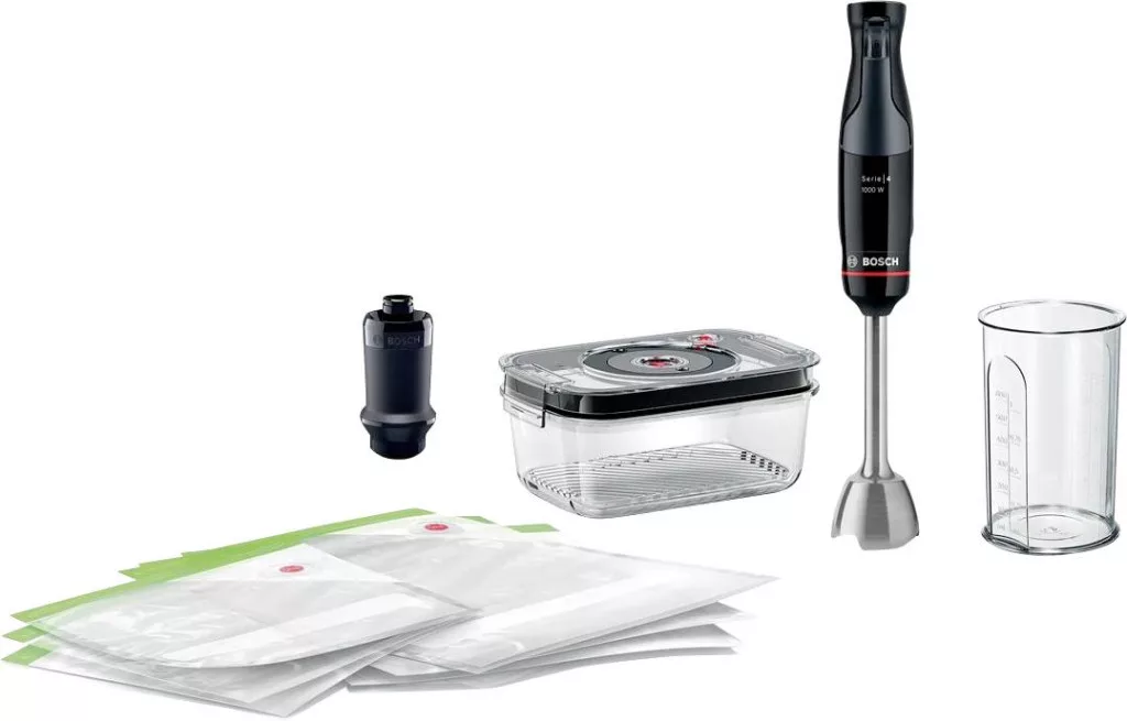 Package contents: 1 x botmixer,1 x keverő/mérőpohár,1 x rozsdamentes acél keverőpálca,3 db nagyméretű vákuumcipzáras táska,3 x vákuumos cipzáras táska kicsi,1 x vákuumszivattyú,1 x 1,2 literes vákuumos üveg élelmiszertároló tartály