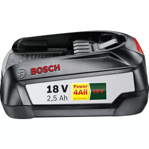 A 18 V-os, 2,5 Ah-s akkumulátorral a barkácsolók minden eszközhöz megfelelő tartozékokat kapnak a 18 V-os Power4All rendszerből. Egy akkumulátor minden készülékhez illeszkedik, és így további beszerzési költségeket takarít meg. Az innovatív lítium-ion technológiának és a Bosch elektronikus cellavédelemnek köszönhetően a felhasználók biztosak lehetnek abban, hogy akkumulátoruk hosszú élettartamú lesz. A technológiák megvédik az akkumulátort a mélykisüléstől, és a memóriaeffektusokat és az önkisülést a múlté teszik.