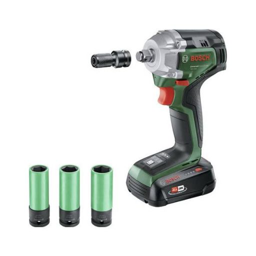 Akkus ütvecsavarozó UniversalImpactDrive 18V-350. Erőteljes, kompakt ütvecsavarozó kerékcseréhez és barkácsolási munkákhoz. Sokoldalúan használható a 350 Nm maximális nyomatéknak, 3400 löket/percnek és 3 fokozatú fordulatszám/nyomaték beállításnak köszönhetően. Robusztus ½" négyzet alakú meghajtó a tartozékok gyors cseréjéhez és biztonságos rögzítéséhez. Nagyobb teljesítmény, hosszabb üzemidő és élettartam a kefe nélküli motortechnológiának köszönhetően. Kompakt kialakítás a könnyű szállításhoz és az erőfeszítés nélküli fej feletti munkához. Syneon technológia az optimális erő és kitartás érdekében. Kompatibilis a Bosch 18V POWER FOR ALL akkumulátorral. Ütés alkatrész tartó 1/2" négyzettől 1/4" hatszögig. 1/2" -os ütközésgátló aljzatkészlet (17, 19, 21 mm). Karton