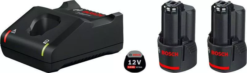 Szállítás tartalma: 2x akkumulátor GBA 12V 3,0Ah (1 600 A00 X79), Gyorstöltő GAL 12V-40 Professional (1 600 A01 9R3)