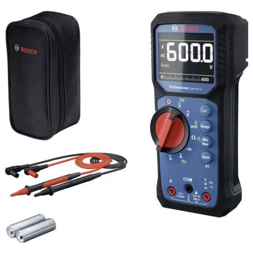 Multiméter GDM 600-15. A GDM 600-15 Professional precíz True RMS mérésekkel növeli a hatékonyságot. A nagyméretű, fordított kijelzővel ellátott LCD kijelző világosan olvasható mérési értékeket biztosít a különböző alkalmazásokban. Ez a sokoldalú eszköz a frekvenciát, a folytonosságot, az ellenállást és a kapacitást méri, valamint rögzíti a jelingadozásokat min/max/átlag mérésekkel. Az IP65-ös besorolása megnöveli a tartósságot és védelmet nyújt az akár 2 m-es leejtés ellen is, így különösen robusztus, még az építkezésen extrém körülmények között is. A munka közbeni fáradtságot csökkentő kényelmes fogantyúval pedig megbízhat a GDM 600-15 Professionalban, hogy a szükséges teljesítményt nyújtja – még a legnehezebb körülmények között is. A GDM 600-15 Professional ideális villanyszerelők, HVAC-technikusok, létesítményvezetők és elektronikai mérnökök számára, és az első választás az elektromos telepítésekhez, karbantartásokhoz és javításokhoz. Feszültséget, áramot és ellenállást mér a különböző elektromos rendszerekben, hogy ellenőrizze a megfelelő működést vagy észlelje a hibákat. A kompakt kialakítás lehetővé teszi az egyszerű egykezes kezelést, az integrált állvány és a különálló mágneses rögzítés pedig még kényelmes kihangosítást is kínál. A Li-ion akkumulátorral kompatibilis GDM 600-15 Professional hosszú élettartamot biztosít. Biztonsági tesztelése CAT III 600 V mérőáramköri kategóriával történt, és kiváló minőségű, rugalmas, tartós szilikonból készült mérőcsíkokat is tartalmaz a garantált megbízhatóság érdekében. Ez a kompakt és hatékony multiméter minden elektromos feladatban támogat. Táska. 2 x 1,5V LR6 elem (AA). MS 90 Professional (1 600 A03 8D2)