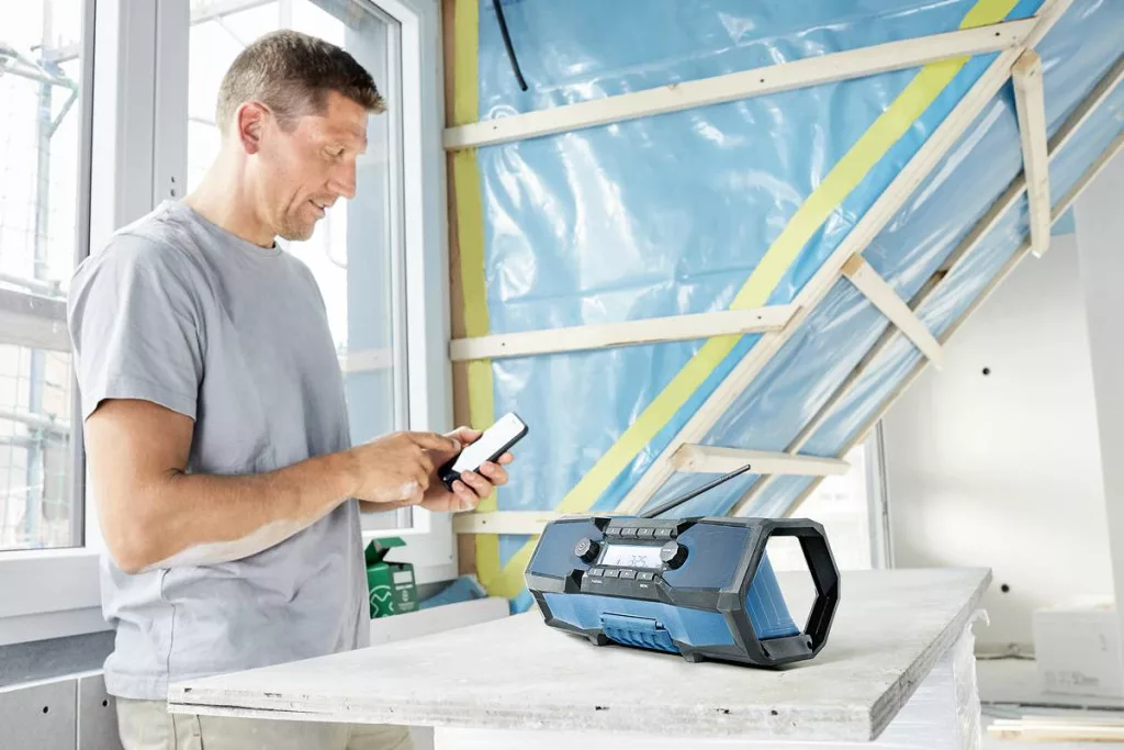Bosch Professional GPB 18V-2 C Építkezési rádió URH Bluetooth®,AUX Fröccsenő víz ellen védett