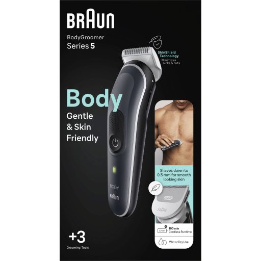 A Braun Bodygroomer 5 BG5340 testszőrtelenítővel pillanatok alatt kényelmesen, teljes testen végezhetsz szőrtelenítést. Ez a férfi testápoló SkinShield technológiával rendelkezik, amely még a legérzékenyebb bőrt is védi, így bárhol teljes magabiztossággal végezheti a szőrtelenítést és a szőrtelenítést. Az érzékeny bőrű fésű tartozékot úgy tervezték, hogy megakadályozza a bőr érintkezését a pengével – a gyengéd vágás érdekében. A BodyGroomer 5 széles vágófelülete biztosítja, hogy minden egyes mozdulattal több szőrszálat rögzítsen és vágjon le (a korábbi Braun trimmelőkkel összehasonlítva) – így kevesebb mozdulattal elérheti egyéni stílusát.
