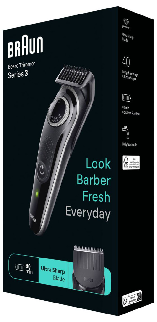 Braun BeardTrimmer 3 BT3440 szakállvágó akkumulátorral, 40 dB, 1 cm, fekete