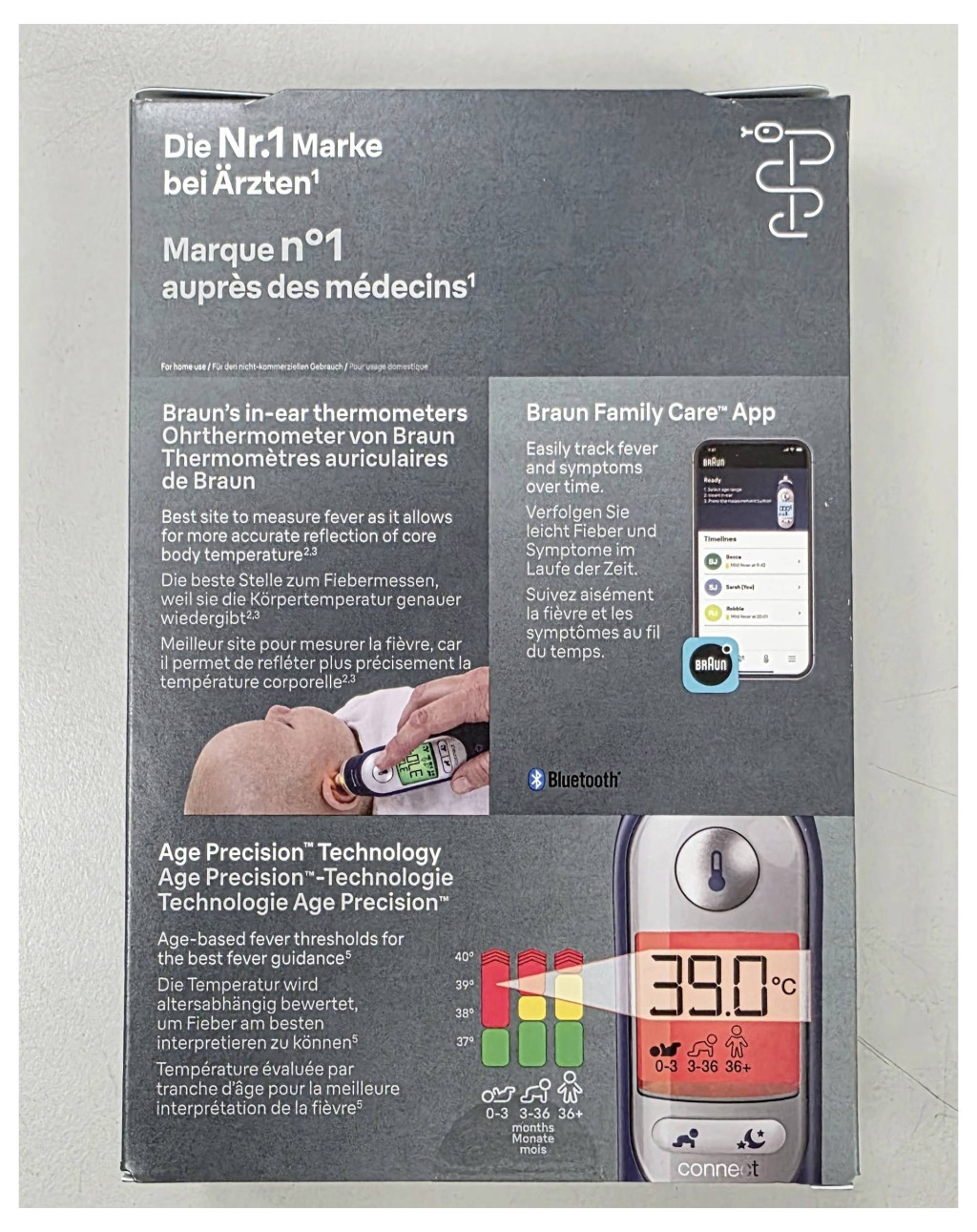 A Braun ThermoScan® 7+ connect fülhőmérő klinikailag validált, és másodpercek alatt pontos méréseket biztosít. A mellékelt Braun Family Care™ alkalmazással együtt zökkenőmentesen és megbízhatóan nyomon követheti családja betegségének előrehaladását otthon.