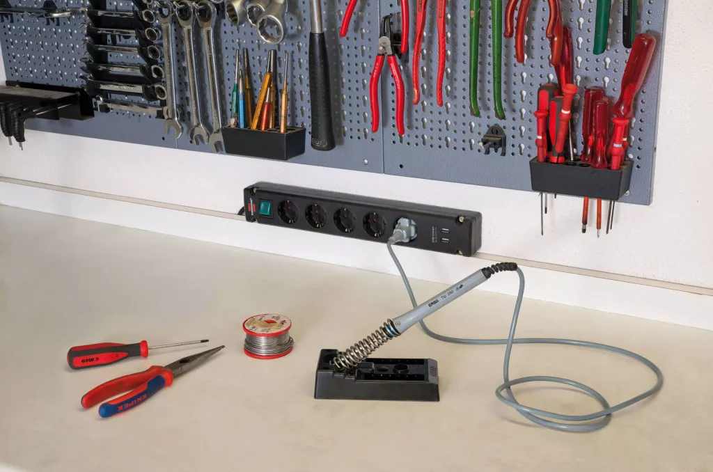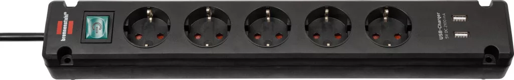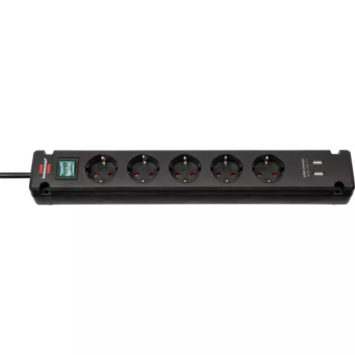 A Brennenstuhl Bremounta elosztója USB töltőfunkcióval, fekete színben és 3 m-es kábellel, minőségével és biztonságával minden területen lenyűgöző. Nemcsak fokozott érintésvédelmet kínál, hanem a következő tulajdonságokkal is lenyűgöző: