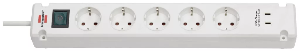 A Brennenstuhl Bremounta elosztója USB C töltési funkcióval, fehér színben és 3 m-es kábellel, nemcsak fokozott érintésvédelmet biztosít, hanem a következő tulajdonságokkal is lenyűgöző: