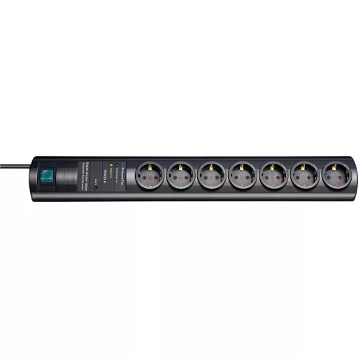A Brennenstuhl 7 utas Primera-Tec többaljzatos szalagja fekete színben, főkövető funkcióval, túlfeszültség védelemmel és 2 méteres kábellel minden területen lenyűgöz minőségével és biztonságával. Nemcsak fokozott védelmet nyújtanak a véletlen érintkezés ellen, de a következő tulajdonságokkal is lenyűgöznek: