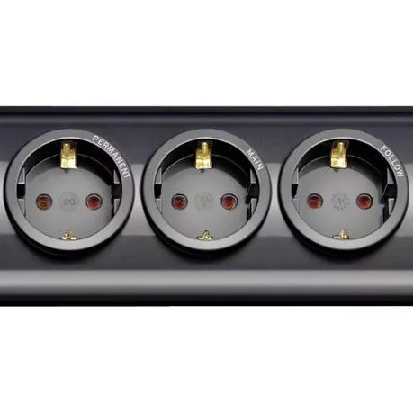 Jellemzők: Szép alakú és stabil polírozott nagy törésállóságú polikarbonát ház. · Optikai funkció kijelző a túlfeszültség elleni védelem érdekében 2 állandó, 1 fő és 4 követő aljzat (vagy 7 állandó aljzat) · Digitális: Egy gombnyomásra elmenti a fő eszköz megfelelő beállítását · Speciális: A legújabb technológia segítségével biztonságosan és kíméletesen váltja a követő eszközöket A kábelkimenet változtatható, mindkét oldalon lehetséges. · Világító biztonsági kapcsoló, kétpólusú ki/be kapcsolható· Falra szereléshez rögzítőfüleket tartalmaz.