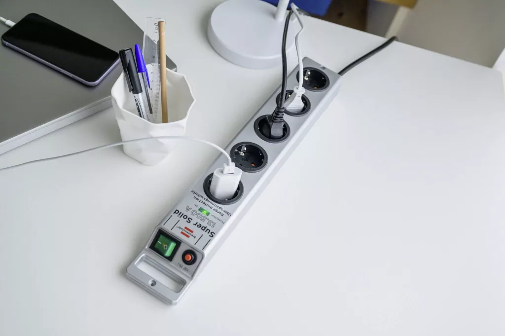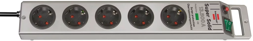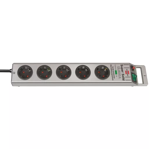 A Brennenstuhl Super-Solid többcsatlakozós elosztó minőségével és biztonságával minden területen lenyűgöz. A kapcsolóval szemben található speciális kábelbemenet különösen megkönnyíti ennek a dugaszolószalagnak a működtetését, például az íróasztal alatt.