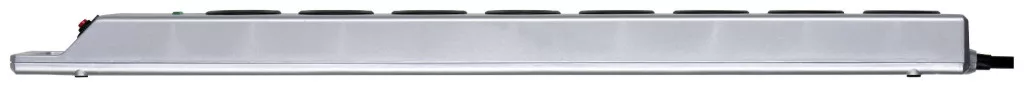 Műszaki adatok: Alkalmazási terület: Beltér · Anyag: Polikarbonát · Dugaljak száma: 8 · Hálózati csatlakozó típus: Védőérintkezős · Hálózati elosztó jellemzők: Túlfeszültség elleni védelem · Kábel típus DIN/VDE szerint: H05VV-F 3G 1,5 mm² · Kábelhossz: 2.5 m · Levezető áram: 13500 A · Méret, hossz: 650 mm · Méret, magasság: 65 mm · Méret, szélesség: 105 mm · Szín: Ezüst · Túlfeszültség elleni védelem: Leágaztató doboz · Üzemi feszültség: 230 V