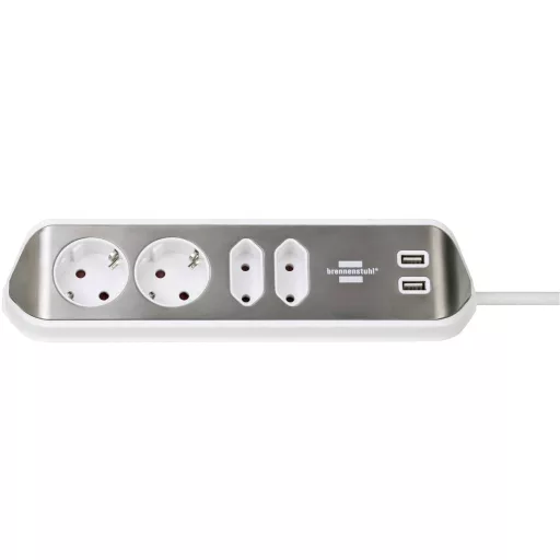 Technical specifications: Alkalmazási terület: Beltér,Mobil · Anyag: Nemesacél · Dugaljak száma: 6 · Hálózati csatlakozó típus: Védőérintkezős · Hálózati elosztó jellemzők: USB-vel · Kivitel: 2 x Schuko, 2 x Euro, 2 x USB · Kábelhossz: 2.00 m · Méret, hossz: 70 mm · Méret, magasság: 300 mm · Méret, szélesség: 100 mm · Szerelési mód: Vízszintes,Függőlegesen · Szín: Ezüst,Fehér · Védelmi típus: IP20 · Üzemi feszültség: 230 V