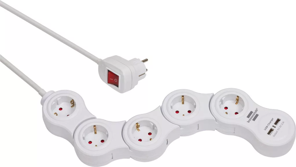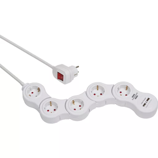 A Brennenstuhl Vario Power elosztója USB töltőfunkcióval, fehér színben, 2 USB töltőaljzattal és 1,4 m hosszú kábellel minden területen lenyűgöző minőségével és biztonságával büszkélkedhet. Az elosztó aljzatai egyenként forgathatók, így tökéletesek sarokban vagy tárgyak körüli használatra. A mozgatható elosztó nemcsak fokozott érintésvédelmet biztosít, hanem a következő tulajdonságokkal is lenyűgöző: