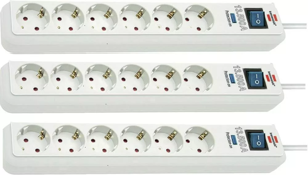 Brennenstuhl 1159720216-3 Túlfeszültség ellen védő elosztó 6 részes Fehér Védőérintkezős 3 db