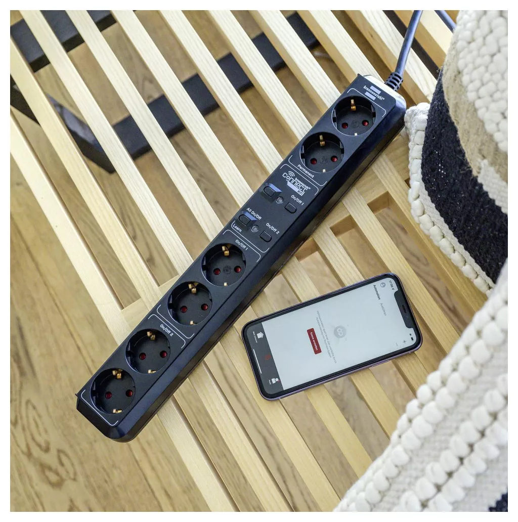 A Brennenstuhl Eco-Line WiFi elosztójával kényelmesen vezérelheti eszközeit bárhonnan, például okostelefonján keresztül a Brennenstuhl Connect alkalmazás segítségével. Az időzítő funkció lehetővé teszi az eszközök automatikus be- és kikapcsolását a napi és heti rutin alapján. Kapcsold be és ki a WiFi elosztót néhány szóval, Alexa és Google Asszisztens hangparancsokkal. Összekapcsoláskor figyeljen arra, hogy a 2,4-GHz-es sávot válassza.