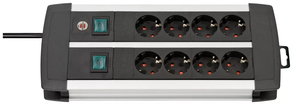 A prémium alumínium soros, többutas dugaszoló aljzat a Brennenstuhl-tól, ezüst / fekete színben és 3 m-es kábellel lenyűgözi minőségét és biztonságát minden területén. Ideális az EDP / video és audio rendszerek kényelmes csatlakoztatásához különféle eszközökkel közvetlenül az asztalon. Nemcsak fokozott védelmet élveznek a véletlen érintkezés ellen, hanem a következő tulajdonságokkal is lenyűgöznek: - Elegáns, időtlen, stabil alumínium ház, érzéketlen, matt eloxált felülettel - Speciális aljzat elrendezés a tápegységekhez - Extra erős stabilitás - Védő érintkező aljzatok 45 ° elrendezésben is dőlésszögű dugaszokhoz - Megvilágított biztonsági kapcsoló, kétpólusú be- és kikapcsolható - A többletkábel a kábeltartóban marad - Függőberendezéssel - Nyolc irányban kapcsolható aljzattal - DE csatlakozórendszer