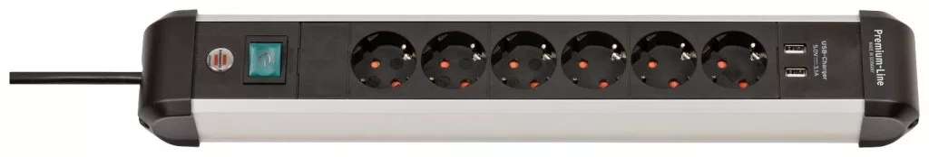 A Brennenstuhl ezüst/fekete színű, vékony kialakítású, 6 irányú Premium-Alu-Line aljzatcsíkja USB-töltési funkcióval optimális tápforrásként szolgál az otthoni irodában vagy a munkahelyen. Az innovatív rögzítési koncepciónak köszönhetően a megvilágított biztonsági kapcsolóval ellátott dugaszolóléc (kétpólusú) falra vagy asztallábra is felszerelhető. A megnövelt érintésvédelemmel ellátott többszörös aljzat a következő tulajdonságokkal is lenyűgöz: