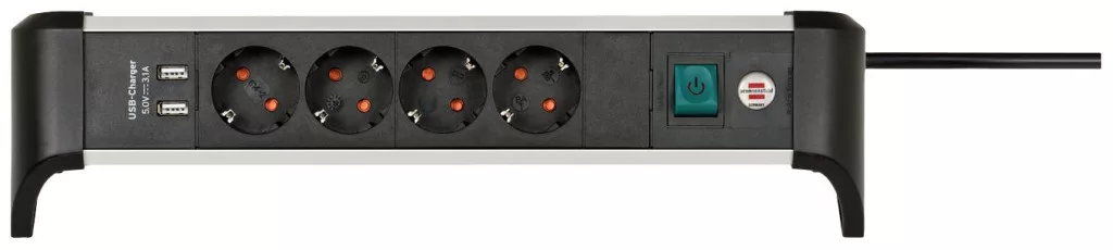 Műszaki adatok: Alkalmazás helye: Beltér · Anyag: Alumínium, Műanyag · Dugaljak száma: 4 · Gyártói szín: Ezüst-fekete · Hálózati csatlakozó típus: Védőérintkezős · Hálózati elosztó jellemzők: USB töltőkimenettel, Kapcsolóval, Gyermekvédelem · Kábel típus DIN/VDE szerint: H05VV-F 3G 1,5 mm² · Kábelhossz: 1.8 m · Méret, hossz: 390 mm · Méret, magasság: 105 mm · Méret, szélesség: 90 mm · Működés jelző: Optikai · Szerelési mód: Asztali · Üzemi feszültség: 230 V