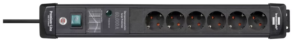 A Brennenstuhl Premium-Line 6 utas többaljzatos szalag fekete színben és 3 méteres kábelben minden területen lenyűgöz minőségével és biztonságával. Megnövelt védelmet nyújt a véletlen érintés ellen.