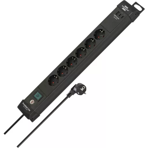 A Brennenstuhl Premium-Line 6 pólusú fekete elosztója nemcsak fokozott érintésvédelemmel nyújt további védelmet, hanem funkcióival is lenyűgöző. A 3 méteres kábelhosszal (H05VV-F 3G1.5) elegendő rugalmasságot kínál a legkülönfélébb helyiségekben való használathoz. A 3 integrált USB töltőport különösen praktikus: két USB C port 65 W-tal és egy USB A port 18 W-tal lehetővé teszi az USB-csatlakozóval rendelkező eszközök kényelmes töltését. Továbbá, az elosztó fali tartóval van felszerelve, és a következő tulajdonságokkal büszkélkedhet: