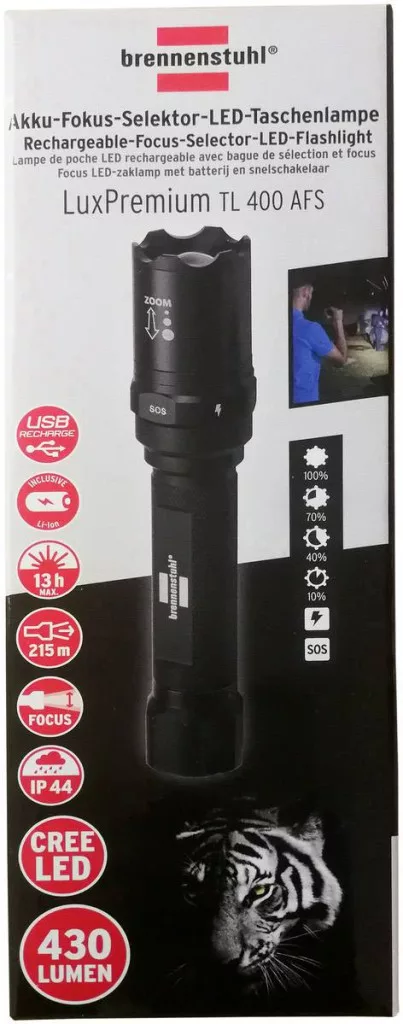 A Brennenstuhl LuxPremium elemes fókuszválasztós LED-es zseblámpája rendkívül erős fényt biztosít a CREE LED-nek köszönhetően, amely egy puha tapintású kapcsolóval könnyen állítható. A zseblámpa a következő tulajdonságokkal is lenyűgöző: