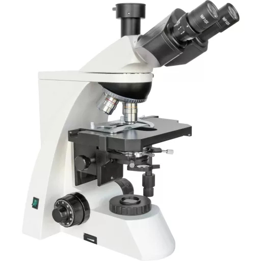 A BRESSER Science TRM-301 egy csúcskategóriás trinokuláris áteresztett fénymikroszkóp: Kiváló képvisszaadás, jó ergonómia, nagy stabilitás és modern, vonzó kialakítás jellemzi. Teljesen stresszes laboratóriumi mikroszkópként az orvostudományban, a biológiában, a mezőgazdaságban és az iparban széles körben alkalmazható. De ajánlott az elkötelezett amatőr mikroszkóp kezelőnek is, mint "életre szóló mikroszkóp". A TRM-301 különösen fontos jellemzője az úgynevezett Koehler-megvilágítás biztosítása. Ez az optimális objektumvilágítás, amely egyben verhetetlenül világos, hűvös (gyengéd a tárgyra), egyenletes, reflexmentes és kontrasztban gazdag, teljes mértékben kihasználja a mikroszkópoptika lehetőségeit. Ezért képviseli a tudományos munka és a mikrofotózás színvonalát. A Köhler megvilágítás a beépített terepi membránnal, valamint az állítható magasságú és középre állítható Abbe kondenzátorral állítható (numerikus rekesz 1,25 írisz membránnal). Természetesen a TRM-301 rendelkezik a kiváló minőségű mikroszkópokra jellemző egyéb felszereltséggel is: hajtókeretes asztallal, lapos és hosszanti irányban mozgatható keresztasztallal, lapos mérlegekkel, ergonómikus koaxiális fókuszáló meghajtókkal (a finom meghajtó 200 µm / forgást ér el) , fokozat nélküli lámpavezérlő, akromatikus objektívek tervezése (4x, 10x, 40x, 100x olajrugó), 10x széles mező szemlencsék (30 ° -os ferde szemlencsékben), interpupilláris távolság és dioptria beállítása, valamint fotócső.
