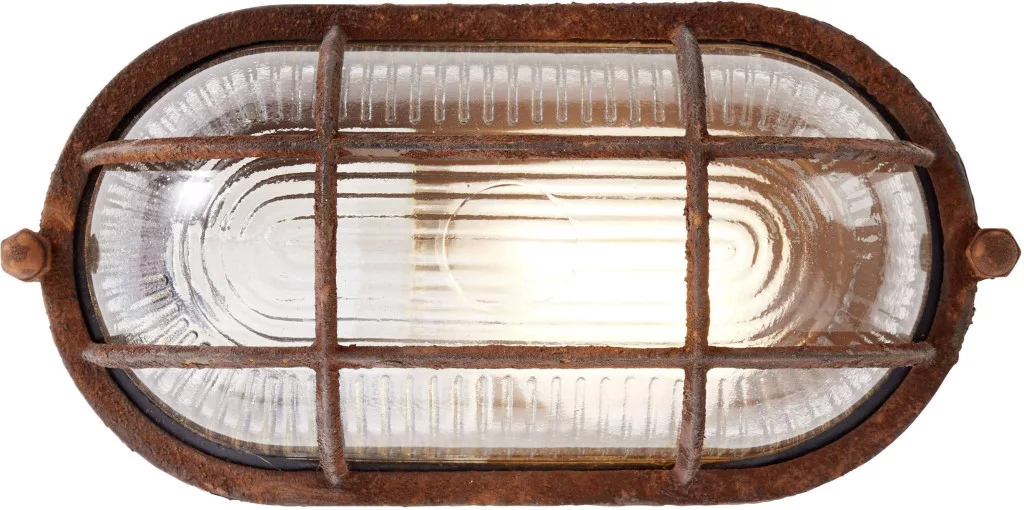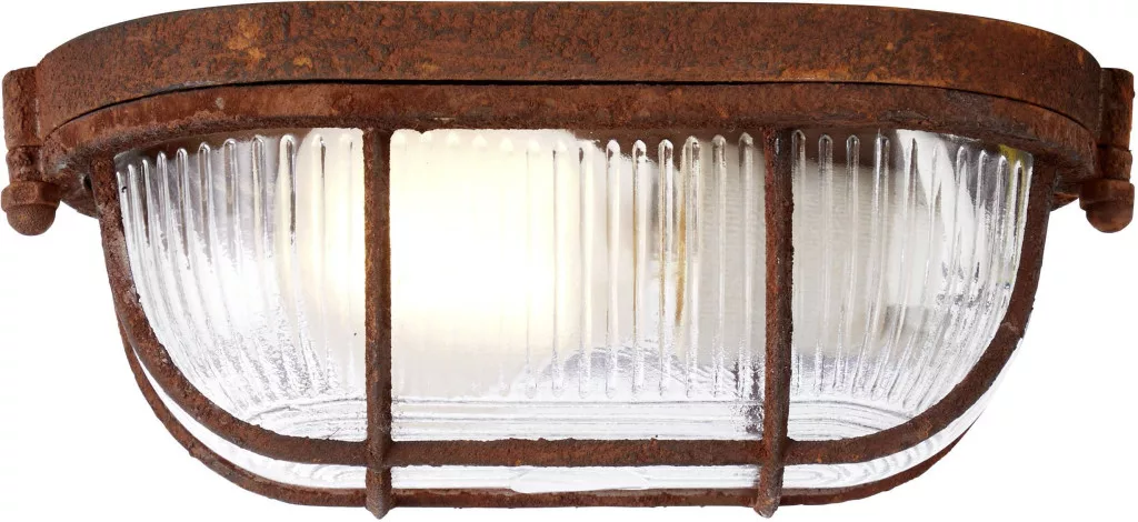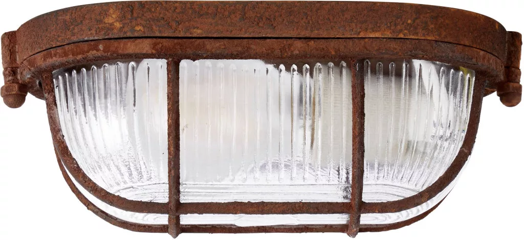 Műszaki adatok: 2021-es energiahatékonysági osztályok: n.rel. · Anyag: Fém, Üveg · Foglalat: E27 · Fényforrás típus: LED · Fényforrások száma: 1 · Fényforrással: Nem · Gyártói szín: Rozsda · Kivitel (lámpa): Ovális · Lámpa jellemzők: Dimmelhető, Falra szerelhető · Méret, magasság: 8.5 cm · Méret, mélység: 10.5 cm · Méret, szélesség: 21 cm · Súly: 552 g · Teljesítmény: 40 W · Teljesítmény fényforrásonként: 40 W · Védelmi osztály: I · Védelmi típus: IP20 · Üzemi feszültség: 230 V