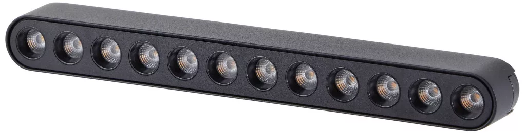 Műszaki adatok: 2021-es energiahatékonysági osztályok: n.rel. · Anyag: Alumínium, Műanyag · Energiafogyasztás: 11 kW/1000 óra · Fényforrás típus: LED modul · Fényszín: 3000 K · Fényszín (fényforrás): Melegfehér · Fényáram összesen: 1200 lm · Gyártói szín: Fekete · Méret, hossz: 26 mm · Méret, magasság: 28 mm · Méret, szélesség: 222 mm · Súly: 151 g · Teljesítmény: 12 W · Védelmi osztály: III · Védelmi típus: IP20 · Üzemi feszültség: 40 V