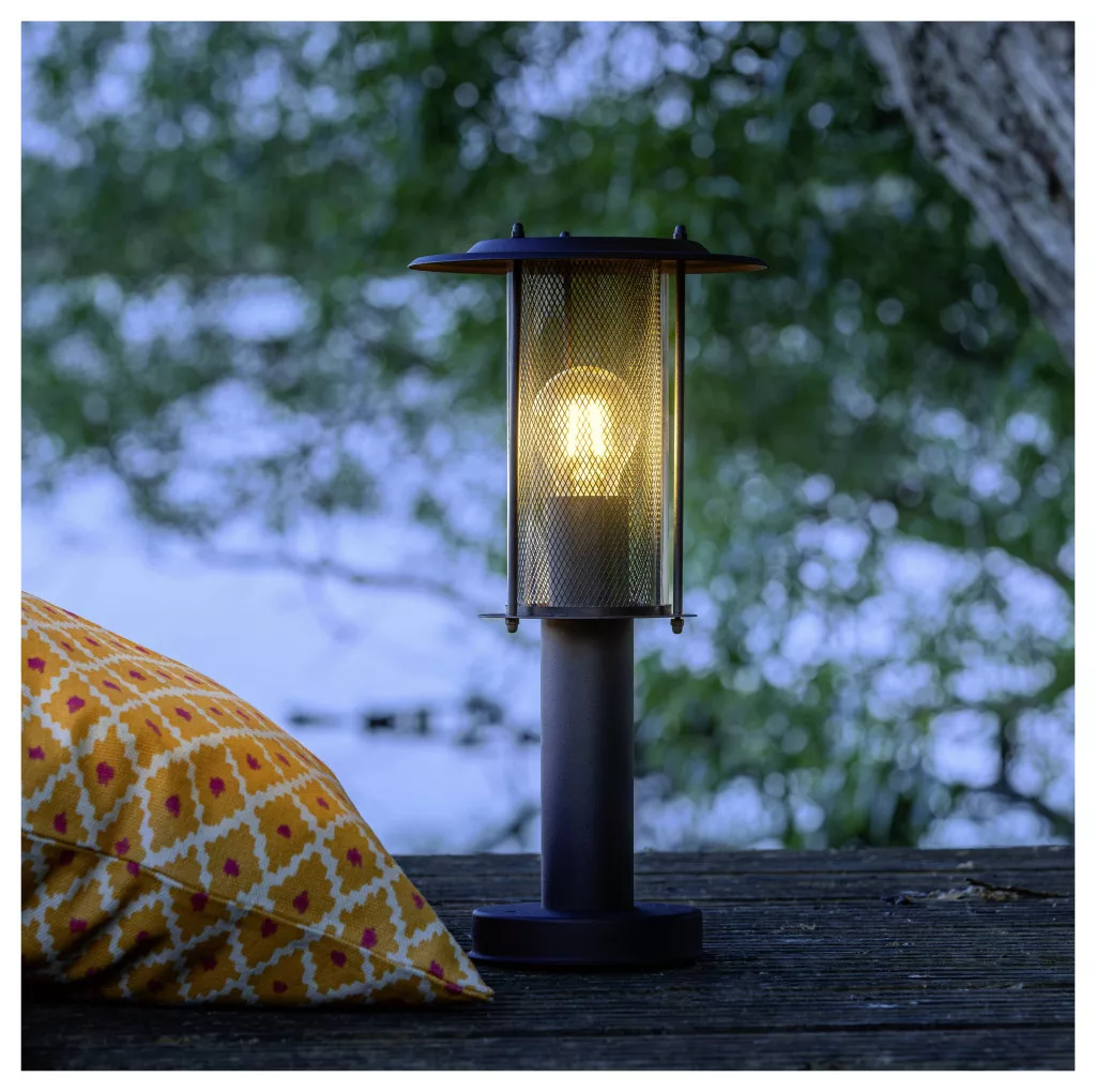 Technical specifications: 2021-es energiahatékonysági osztályok: n.rel. · Anyag: Fém,Műanyag · Foglalat: E27 · Fényforrások száma: 1 · Lámpa jellemzők: Dimmelhető · Méret, magasság: 40 cm · Space (lights): Terasz/ülősarok,Járda megvilágítás,Hangulatos kertvilágítás,Ház/garázs · Szín: Fekete (matt) · Súly: 0.859 · Teljesítmény: 20 W · Védelmi osztály: I · Védelmi típus: IP44 · Átmérő: 19.8 cm