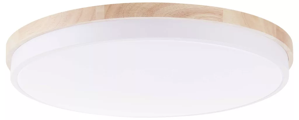 Technical specifications: 2021-es energiahatékonysági osztályok: n.rel. · Anyag: Fém,Fa,Műanyag · Foglalat: Fixen beépített LED-es · Fényforrás típus: LED (egyszínű) · Fényforrással: Igen · Fényszín: 6500 K · Fényszín (fényforrás): Melegfehértől a hidegfehérig · Fényáram összesen: 4500 lm · Kivitel: Kerek · Lámpa jellemzők: Dimmelhető,Távirányítóval · Méret, magasság: 80 mm · Szín: Fehér (matt),Fa · Súly: 1.685 kg · Teljesítmény: 36 W · Védelmi osztály: I · Védelmi típus: IP20 · Átmérő: 500 mm · Üzemi feszültség: 230 V