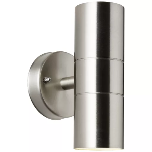 Műszaki adatok: 2021-es energiahatékonysági osztályok: n.rel. · Anyag: Fém, Üveg · Foglalat: GU10 · Fényforrással: Nem · Gyártói szín: Nemesacél · Helyiség: Terasz/ülősarok, Járda megvilágítás, Hangulatos kertvilágítás, Ház/garázs · Kivitel (lámpa): Hengeres · Lámpa jellemzők: Felfelé és lefelé világít · Méret, magasság: 170 mm · Méret, mélység: 112 mm · Méret, szélesség: 85 mm · Stílus: Fiatal lakás, Modern/dizájn · Súly: 533 g · További műszaki adatok: Szükséges megvilágító: 2x GU10, max. 18W · Védelmi osztály: I · Védelmi típus: IP44 · Üzemi feszültség: 230 V