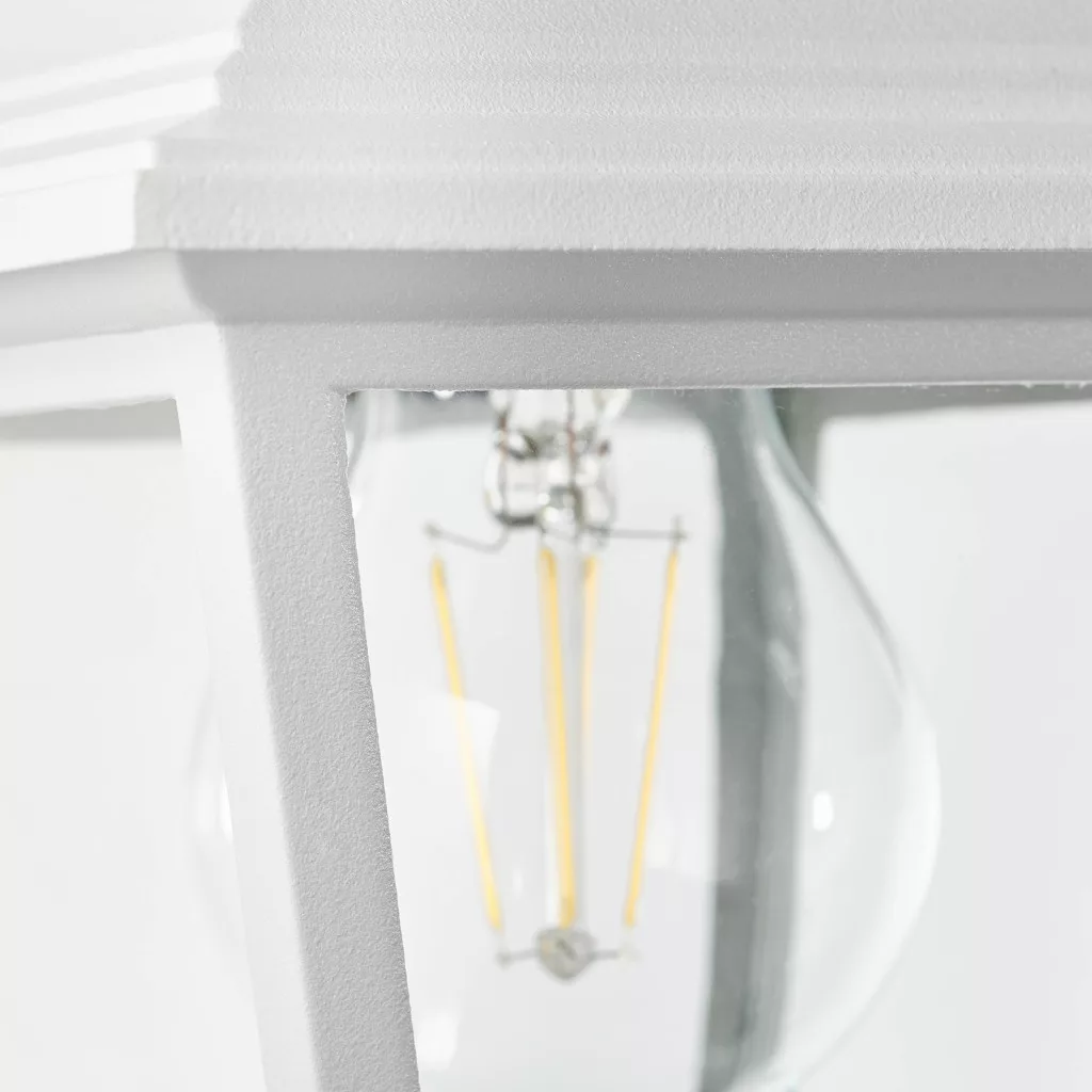Műszaki adatok: 2021-es energiahatékonysági osztályok: n.rel. · Anyag: Fém, Üveg · Foglalat: E27 · Fényforrással: Nem · Gyártói szín: Fehér · Helyiség: Terasz/ülősarok, Járda megvilágítás, Hangulatos kertvilágítás, Ház/garázs · Kivitel (lámpa): Lámpás (álló) · Méret, magasság: 310 mm · Méret, mélység: 190 mm · Méret, szélesség: 140 mm · Stílus: Vidéki ház/rusztikus/antik · Súly: 799 g · További műszaki adatok: Szükséges megvilágító: 1x E27, max. 60 watt · Védelmi osztály: I · Védelmi típus: IP44 · Üzemi feszültség: 230 V