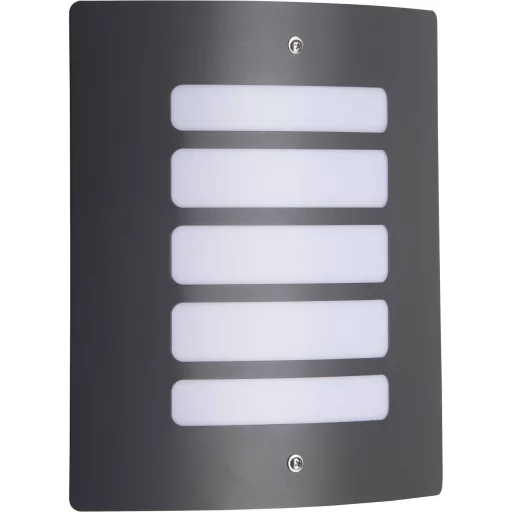 Műszaki adatok: 2021-es energiahatékonysági osztályok: n.rel. · Anyag: Fém, Műanyag · Foglalat: E27 · Fényforrások száma: 1 · Fényforrással: Nem · Gyártói szín: Antracit · Helyiség: Terasz/ülősarok, Járda megvilágítás, Hangulatos kertvilágítás, Ház/garázs · Kivitel (lámpa): Derékszögű · Lámpa jellemzők: Raszterüveggel, Közvetett fénykilépés · Méret, hossz: 24 cm · Méret, magasság: 29 cm · Méret, szélesség: 9 cm · Teljesítmény: 60 W · Teljesítmény fényforrásonként: 60 W · Védelmi osztály: II · Védelmi típus: IP44 · Üzemi feszültség: 230 V
