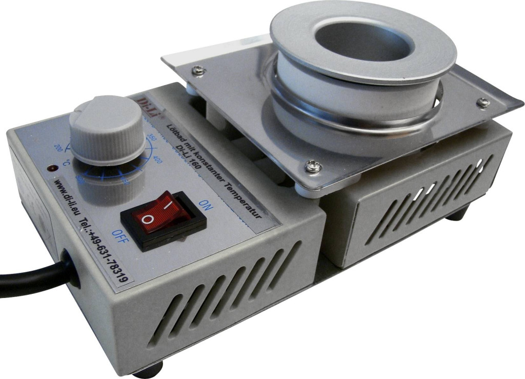Kis forrasztókád. Hasznos eszköz forrasztási alkatrészek előkészítéséhez.